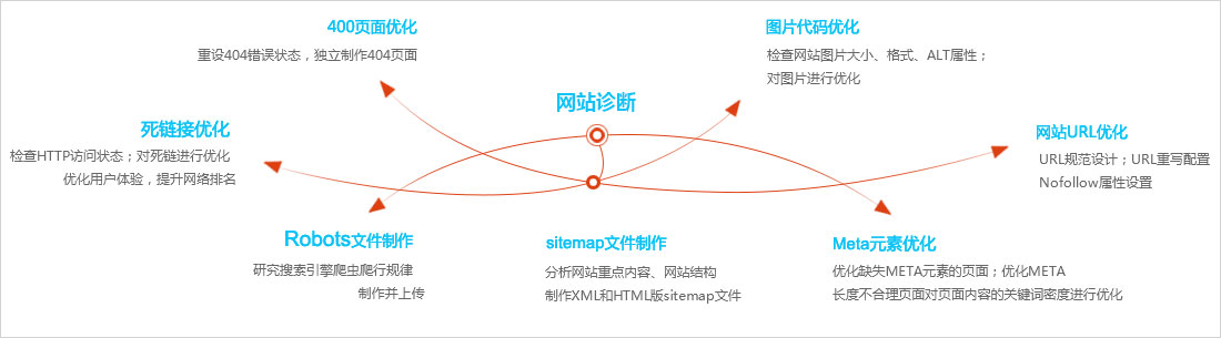 仟亿网站优化六芒星,以关加突出的网络营销效果为目标,从网站优化的多个维度出发,进行多方位立体式的贴身诊断,发现您网站中存在的问题,为网站优化策略的实施提供明 确的向导。