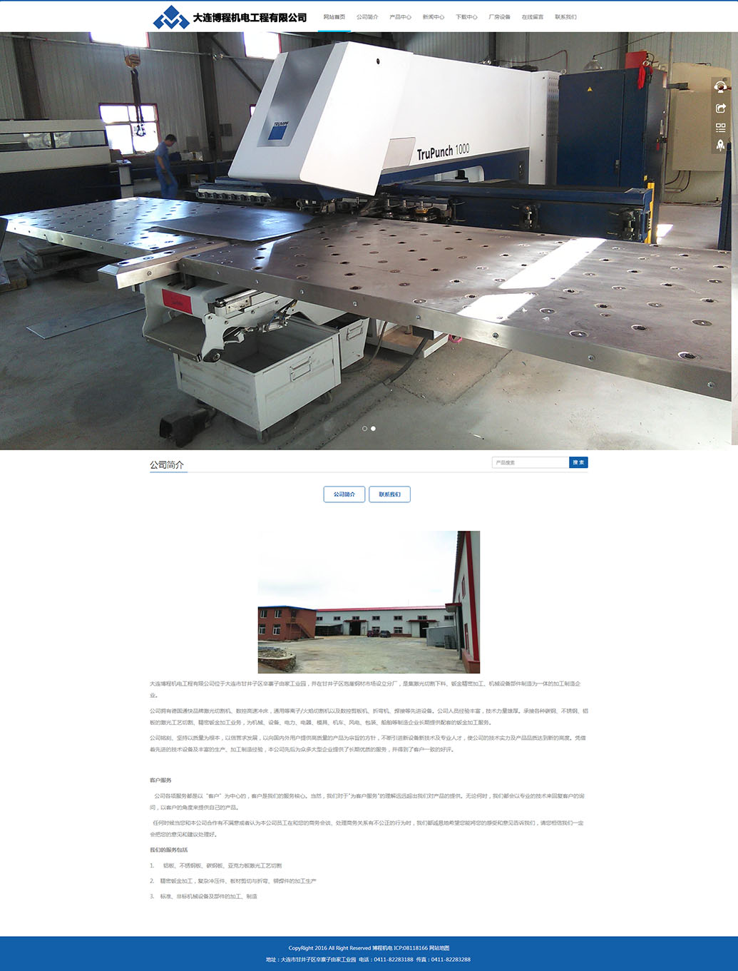 大连博程机电工程有限公司位于大连市甘井子区辛寨子由家工业园,并在甘井子区泡崖钢材市场设立分厂,是集激光切割下料、钣金精密加工、机械设备部件制造为一体的加工制造企业。公司拥有德国通快品牌激光切割机、数控高速冲床,通用等离子/火焰切割机以及数控剪板机、折弯机、焊接等先进设备...