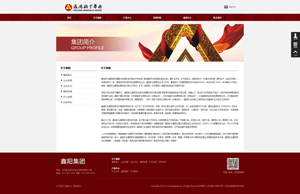 鑫阳矿业集团是中国最大的镁矿类产品生产供应商, 是经国家外经贸部批准成立的,集矿山开采、矿产品加工、阻燃剂生产、环境污染处理、肥料生产、进出口贸易、科技研发于一体,拥有多项专利的综合型集团化企业。鑫阳矿业集团创立于1995年,截至到2015年集团固定资产总投资20亿元...