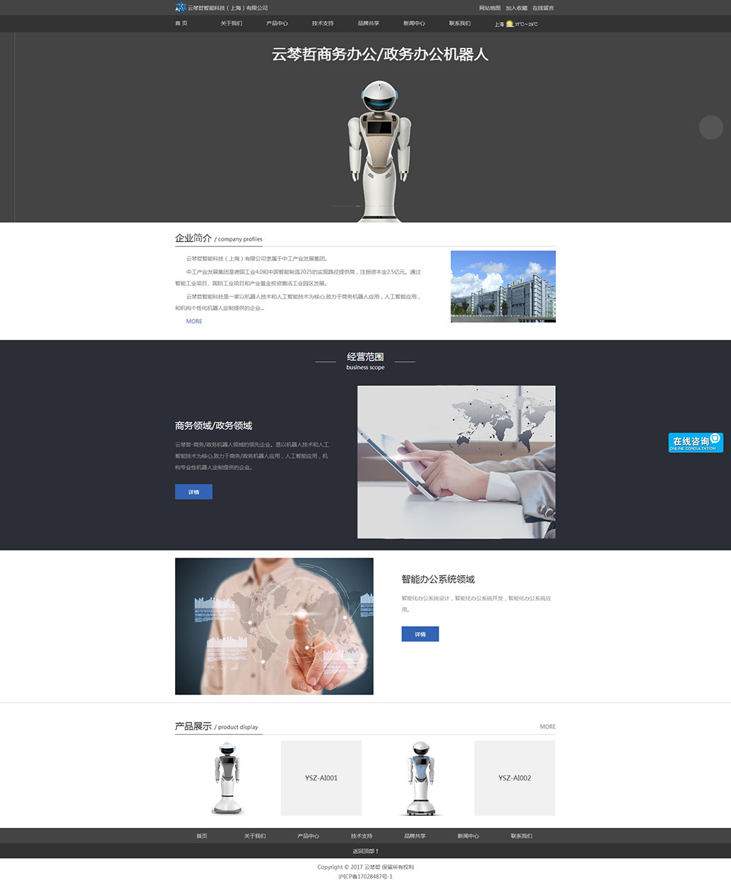 云棽哲智能科技(上海)有限公司隶属于中工产业发展集团。中工产业发展集团是德国工业4.0和中国智能制造2025的实现路径提供商,注册资本金2.5亿元。通过智能工业项目、国防工业项目和产业基金投资激活工业园区发展。云棽哲智能科技是一家以机器人技术和人工智能技术为核心,致力于商务/政务机器人应...