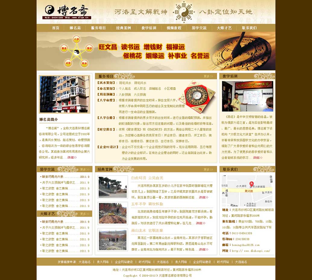 大连博名斋咨询有限公司 位于辽宁 大连市中山区,主营 、住宅风水、命运预测 等。公司秉承“顾客至上,锐意进取”的经营理念,坚持“客户**”的原则为广大客户提供优质的服务。欢迎惠顾!