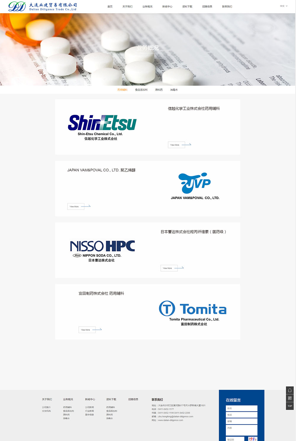 大连业建贸易有限公司已经与国内外诸多医药、保健品公司及研发机构形成坚实稳定的合作关系,能够及时满足客户的需求,在药物制剂研发、保健品研发、药用辅料技术服务方面为客户提供有竞争力、可靠的产品、解决方案及服务。