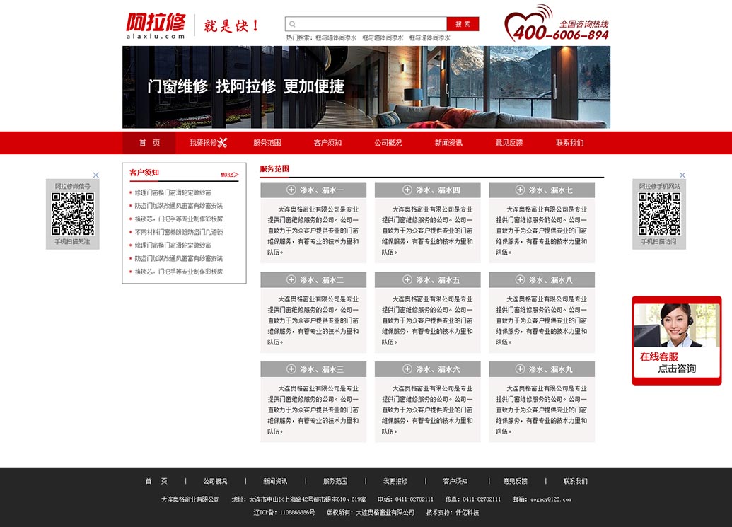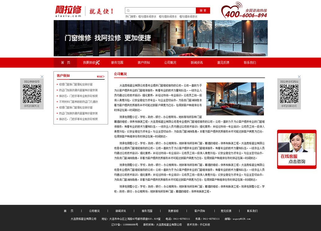 大连阿拉修科技有限公司成立于2014年底,依托大连奥格窗业有限公司和大连金州区光明塑钢门窗厂的强大发展平台,组建成为一家集门窗维修、设计、安装、改装的专业的科技公司,旨在服务广大客户。公司按照现代企业制度建立组织架构,董事长为公司法人代表,总经理负责公司的日常经营管理...