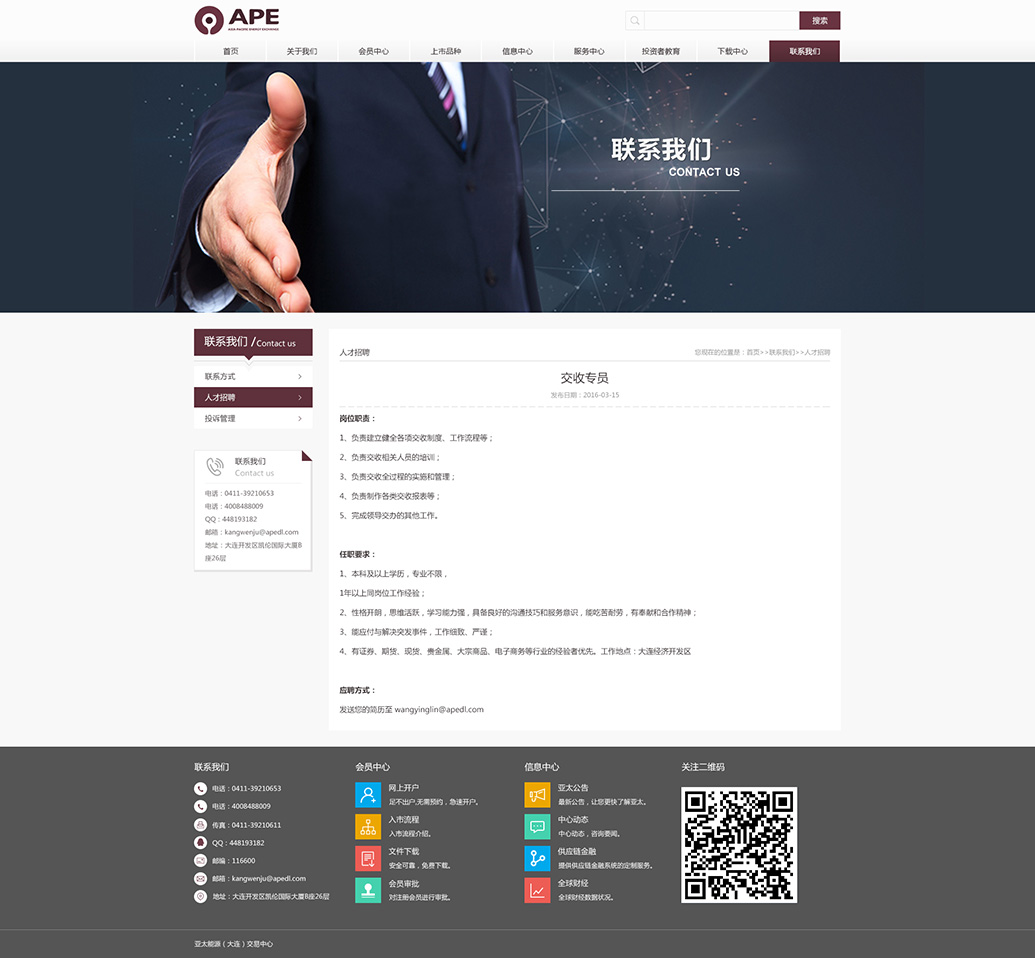 亚太能源交易中心(APE)是按照国家相关政策精神,为了全面融入“一带一路”和“新一轮东北振兴”宏伟战略实施的行列,在大连市委、市政府的监督管理和大力支持下,由中国国储能源化工集团股份公司为主发起成立的面向东北亚的国际能源交易...