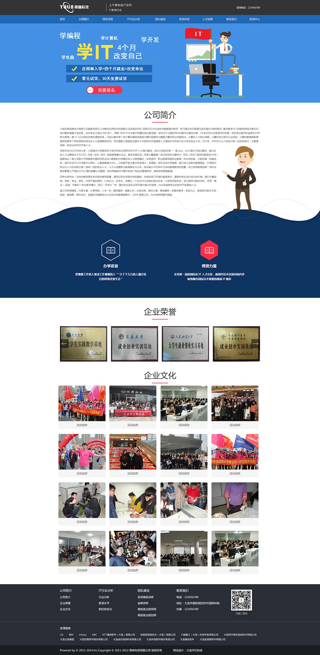 大连雨琳信息技术有限公司首家全面引入非教材应用软件和资格认证体系的同时,采取对日本先进软件教育理念做到“学习理论知识授课与实际操作训练相结合,集体教学与个别指导相结合等方式”培训整体偏重于实战型,在校学生已经达400多人,拥有3000平方米超大规模的独立教学楼...