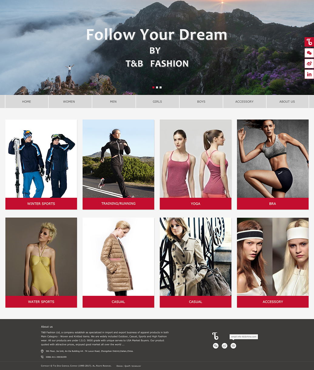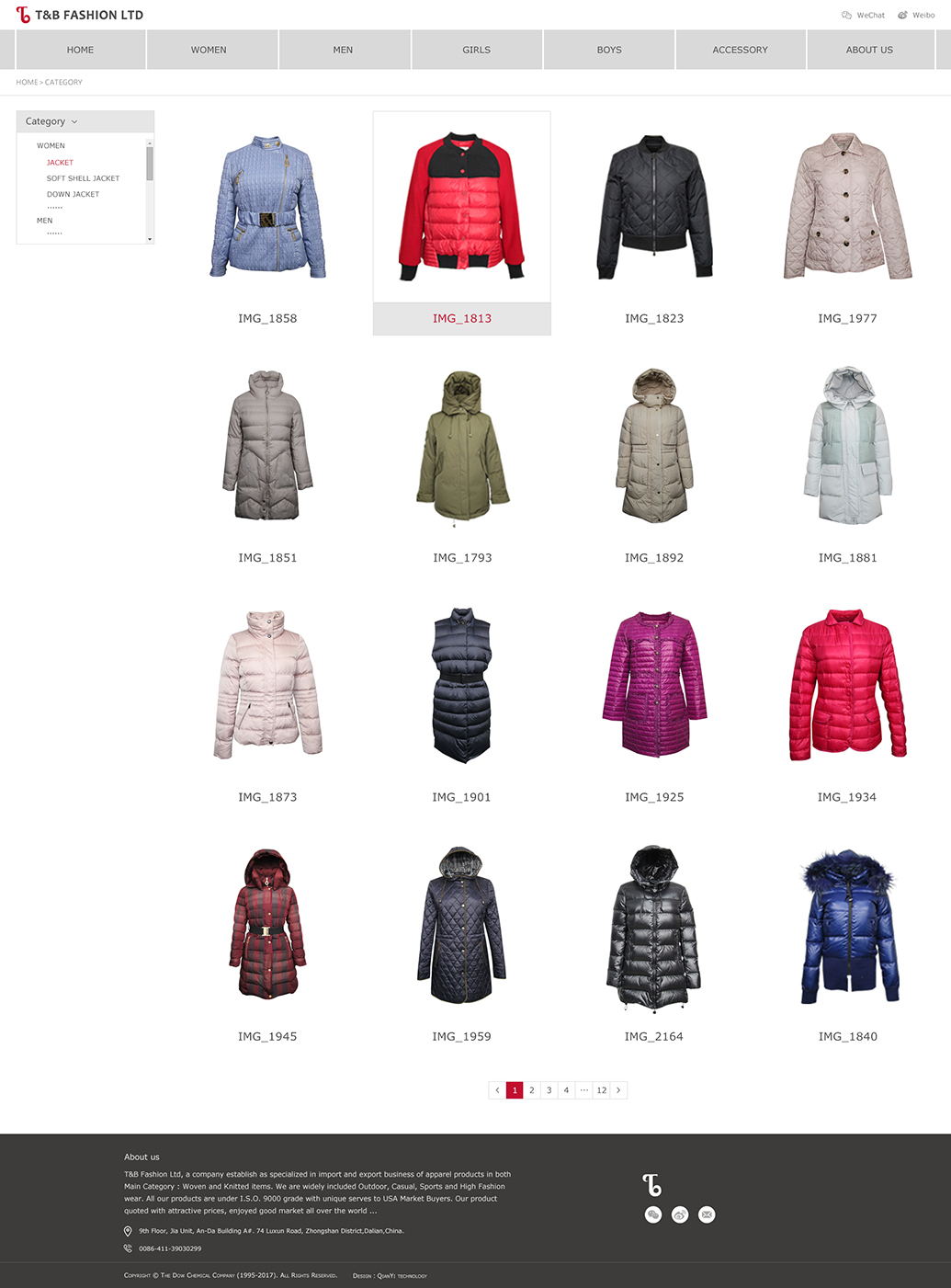 T&B Fashion Ltd, a company establish as specialized in import and export business of apparel products in both Main Category : Woven and Knitted items. We are widely included Outdoor, Casual, Sports and High Fashion wear. All our products are under I.S.O. 9000 grade with unique serves to USA Market Buyers.