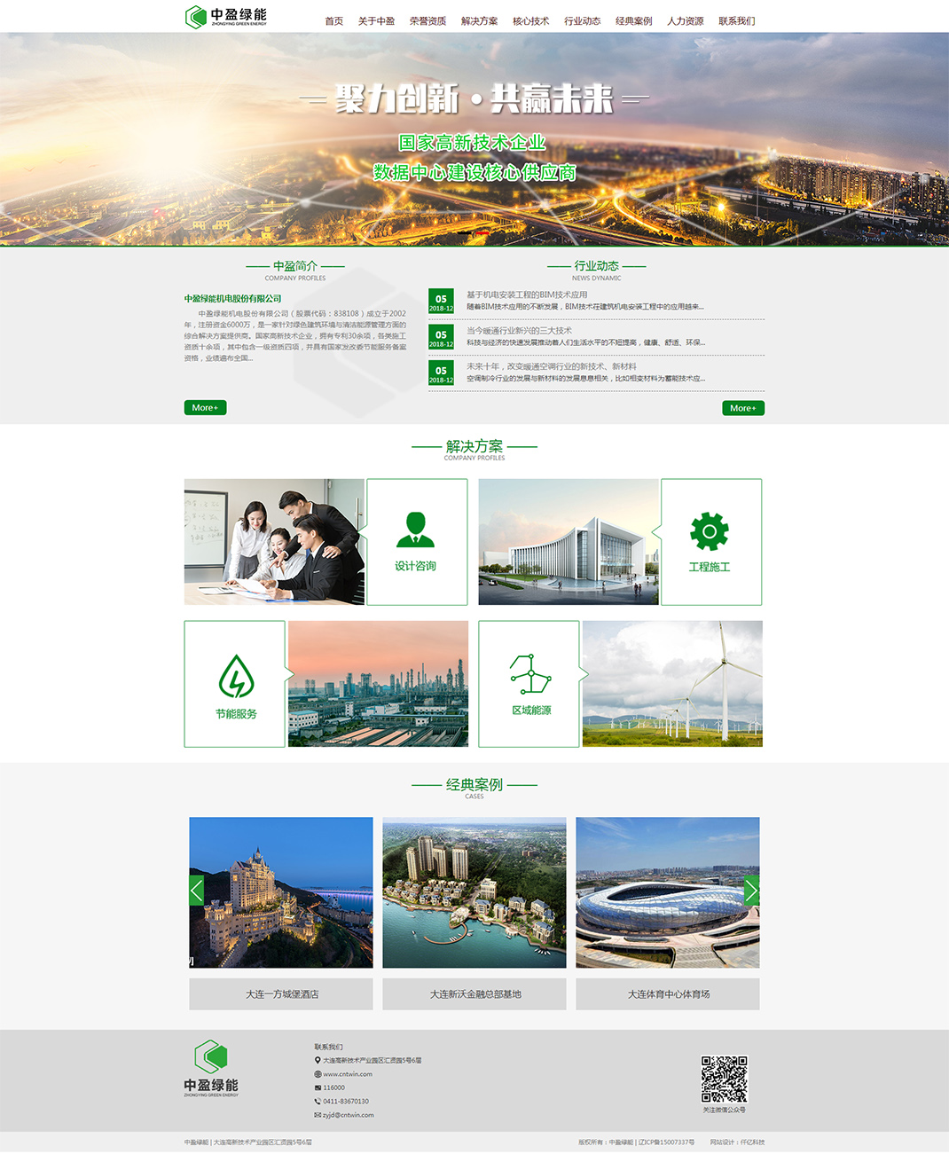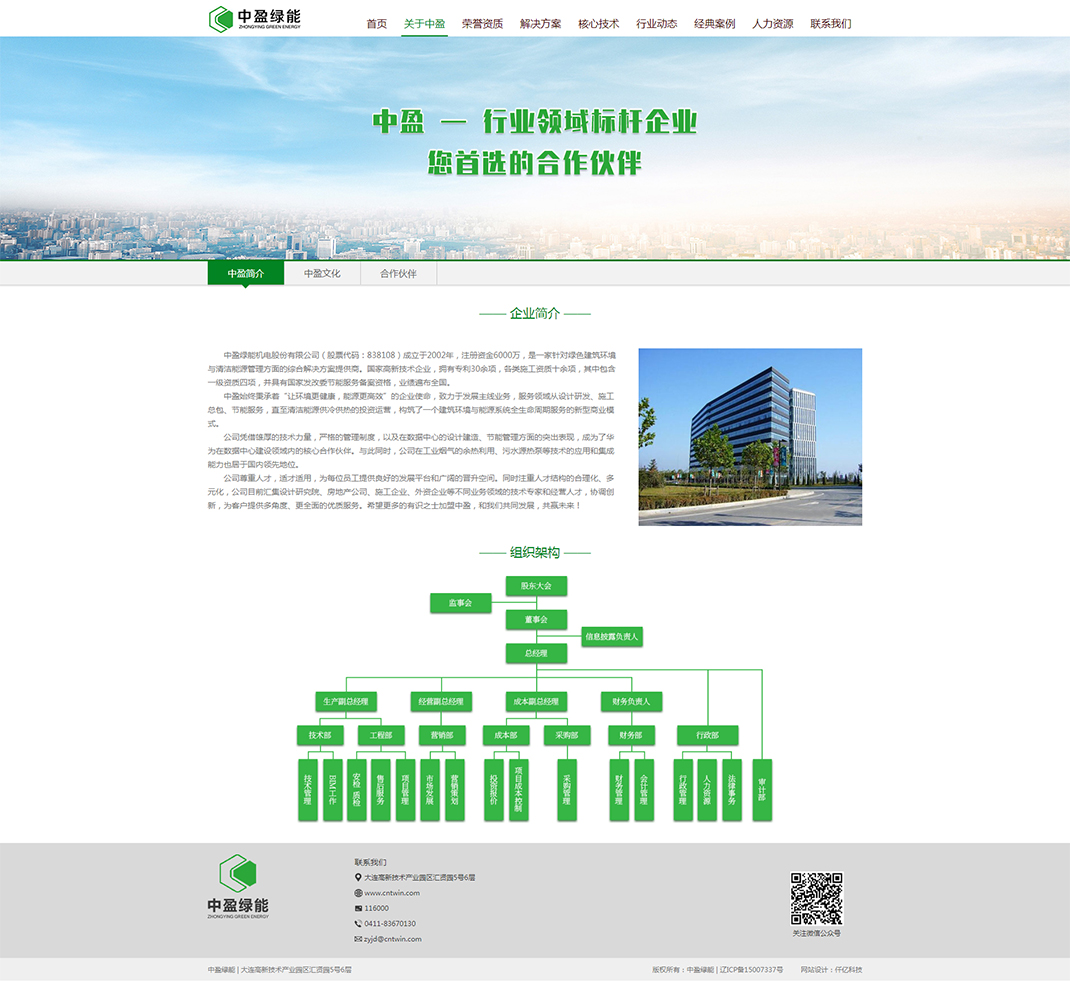 中盈绿能机电股份有限公司(股票代码:838108)成立于2002年,注册资金6000万,是一家针对绿色建筑环境与清洁能源管理方面的综合解决方案提供商。国家高新技术企业,拥有专利30余项,各类施工资质十余项,其中包含一级资质四项,并具有国家发改委节能服务备案资格,业绩遍布全国。