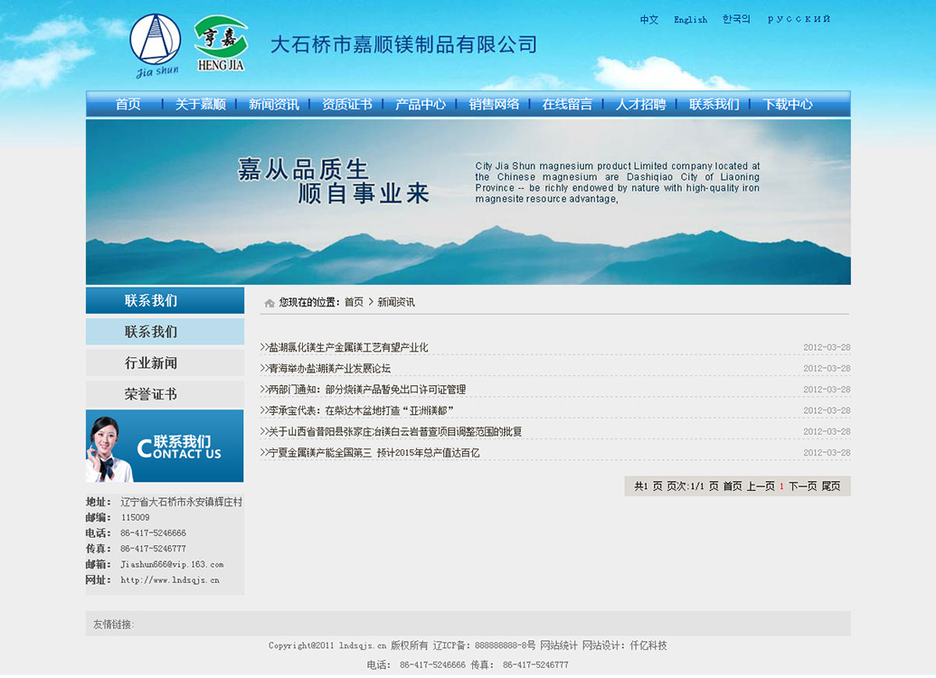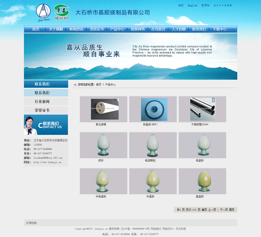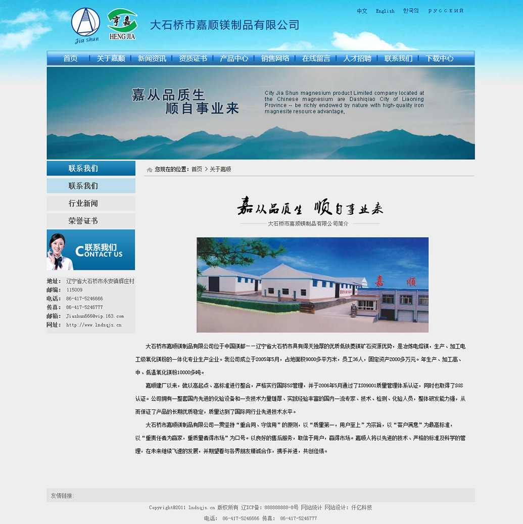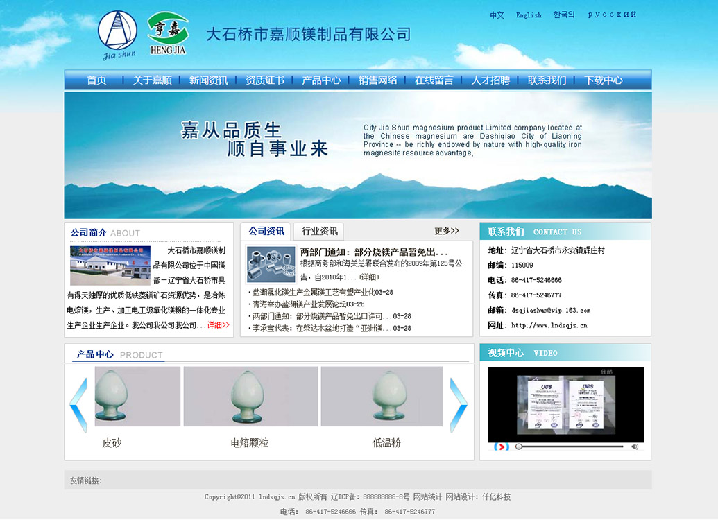 石桥市嘉顺镁制品有限公司位于中国镁都——辽宁省大石桥市具有得天独厚的优质低铁菱镁矿石资源优势,是冶炼电熔镁,生产、加工电工级氧化镁粉的一体化专业生产企业。我公司成立于2005年5月,占地面积9000多平方米,员工36人,固定资产2000多万元。年生产、加工高、中、低温氧化镁粉10000多吨。