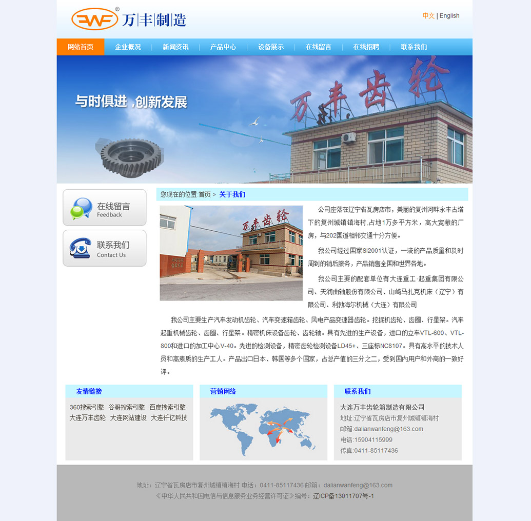 公司座落在辽宁省瓦房店市,美丽的复州河畔永丰古塔下的复州城镇镇海村,占地1万多平方米,高大宽敞的厂房,与202国道相邻交通十分方便。 我公司经过国家SI2001认证,一流的产品质量和及时周到的销后服务,产品销售全国和世界各地。