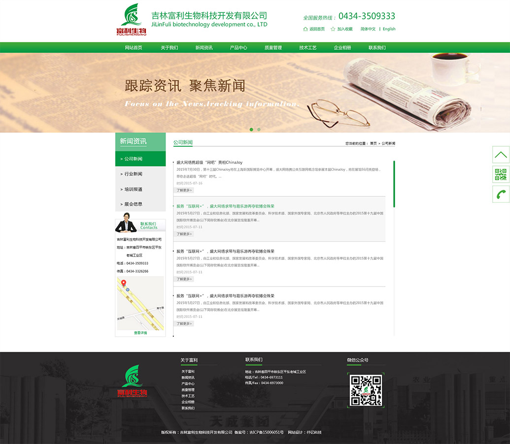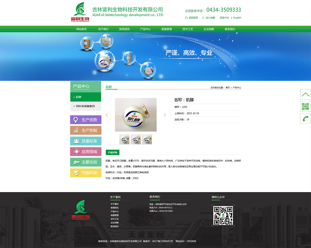 吉林富利生物科技开发有限公司隶属于天成集团全资子公司,于2014年4月建设2015年1月投产,投资1.2亿元,采用最新一代树脂吸附工艺,从玉米浸泡水中提取植酸,进一步生产加工成菲汀、肌醇、磷酸氢钙等产品。 富利生物一期建设生产1000吨肌醇生产线,在设计、建设过程中尤其专注于产品的控制和环境资源的保护...