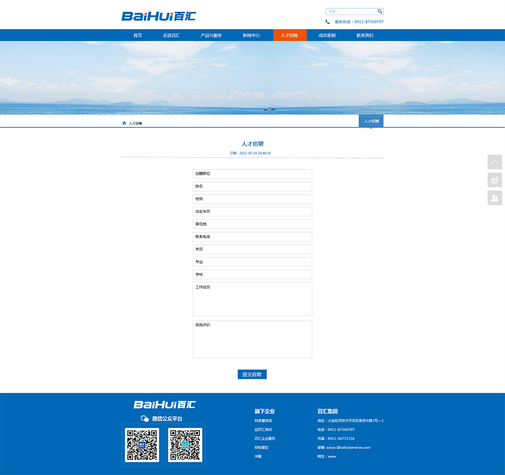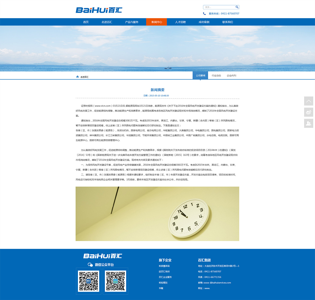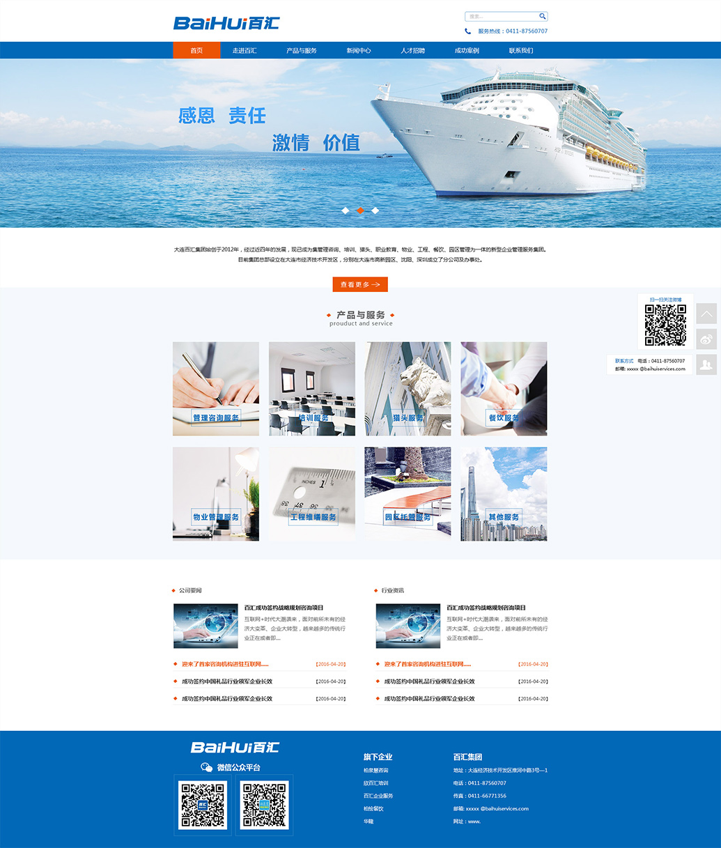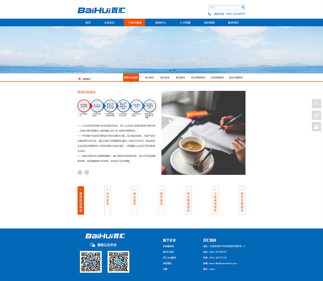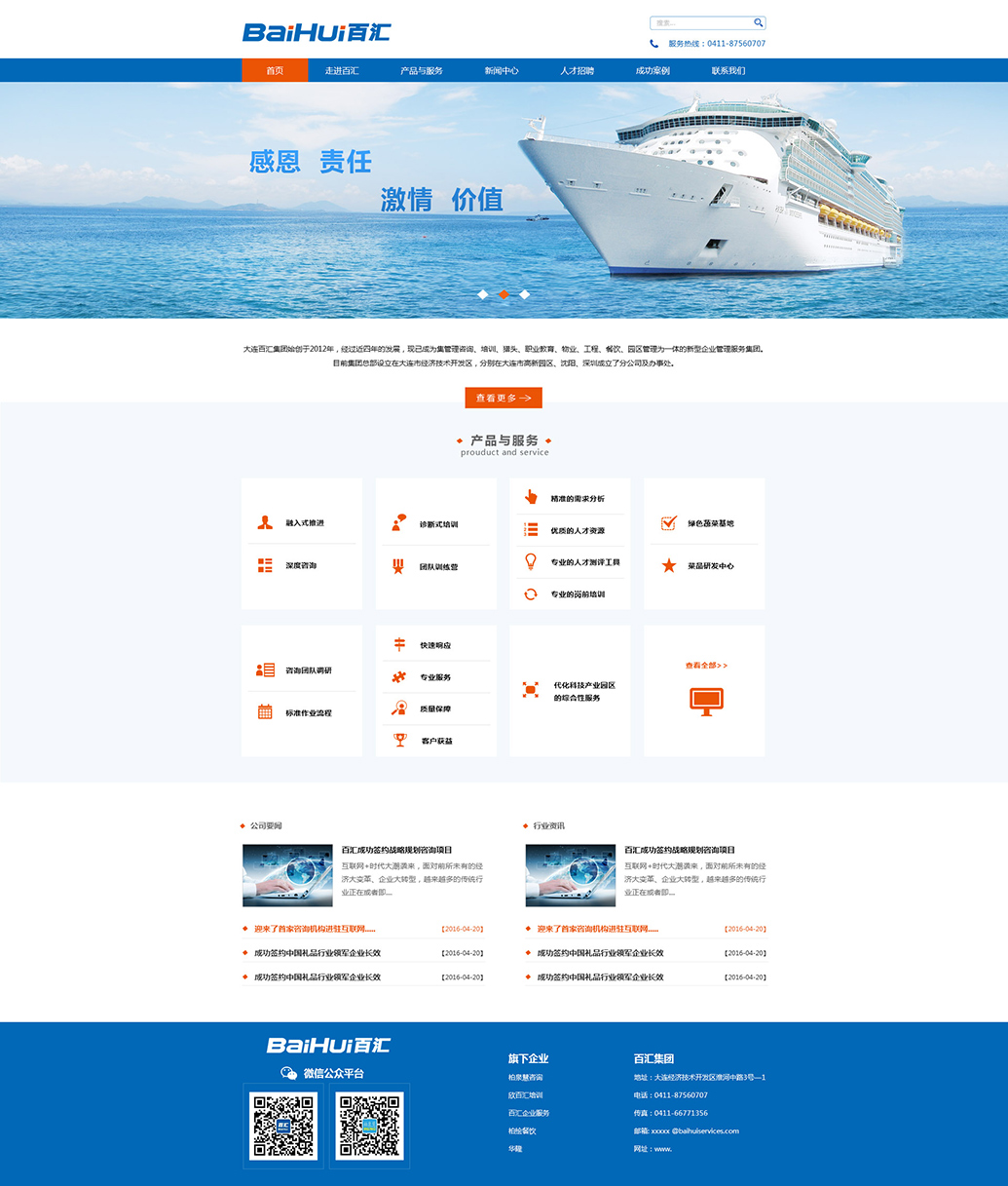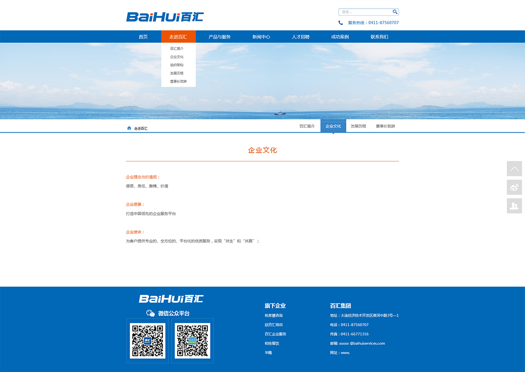 大连百汇集团始创于2012年,经过近四年的发展,现已成为集管理咨询、培训、猎头、职业教育、物业、工程、餐饮、园区管理为一体的新型企业管理服务集团。目前集团总部设立在大连市经济技术开发区,分别在大连市高新园区、沈阳、深圳成立了分公司及办事处...