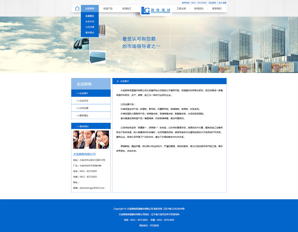 大连朗格保温建材有限公司从创建伊始公司就致力于建筑节能、保温建材的探索与研究,现已发展成一家集保温材料研发、生产、销售、施工为一体的行业领先企业。公司将始终坚持“质量第一,信誉第一”的宗旨,以科学的管理手段,雄厚的技术力量,精良的施工设备积极生产各种保温、防火等建筑材料及辅材...