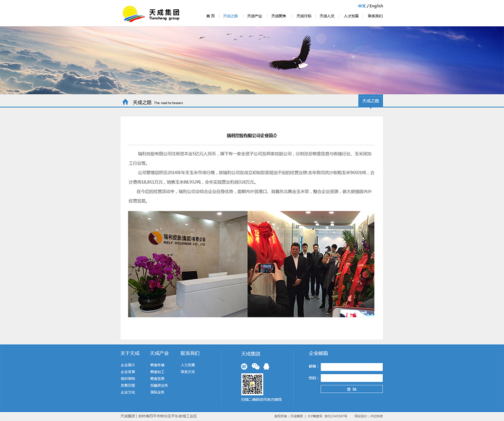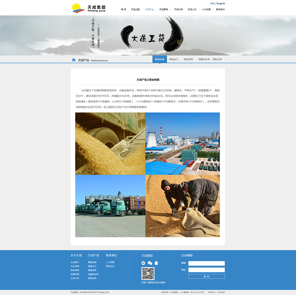 天成集团成立于2005年,是一家集粮食收储、玉米深加工、国际贸易为一体的多元化现代企业集团。致力于为食品、医药、化工、饲料等行业提供优质的粮油原料,并为消费者提供健康营养的绿色食品。集团年经营粮食300万吨,其中:收储100万吨...