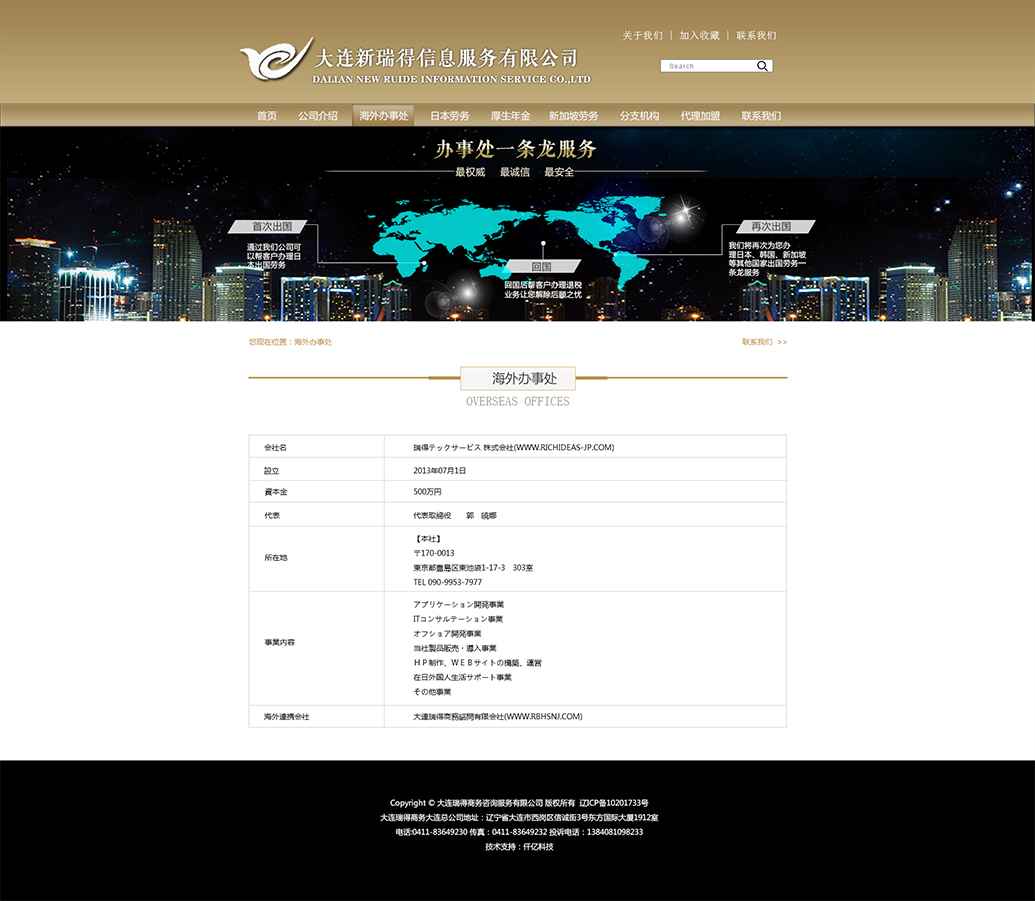 瑞得公司是一家致力于为日本归国研修生办理厚生年金及二次退税的涉外退税专属服务机构,同时与多家一级资质公司长期合作,主要提供新加坡,日本,韩国等多国出国劳务全方位一手信息,工种全,项目多。 中国总部2005年成立,日本株式会社于2013年成立...