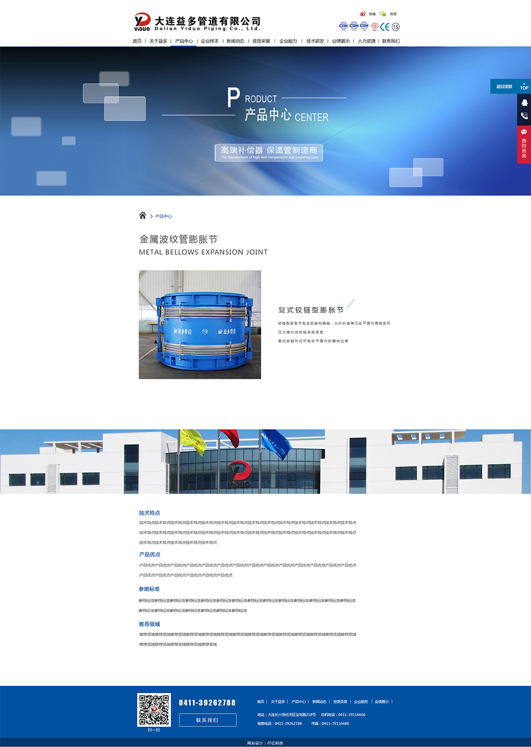 大连益多管道有限公司坐落于大连长兴岛经济区,占地面积20万平方米,是一家集研发、设计、制造膨胀节、补偿器、保温管等产品并提供相关技术服务的高新技术企业。公司致力于制造不低于管道寿命的补偿器,为您量身定制,打造多领域、高品质、长寿命的高端膨胀节...