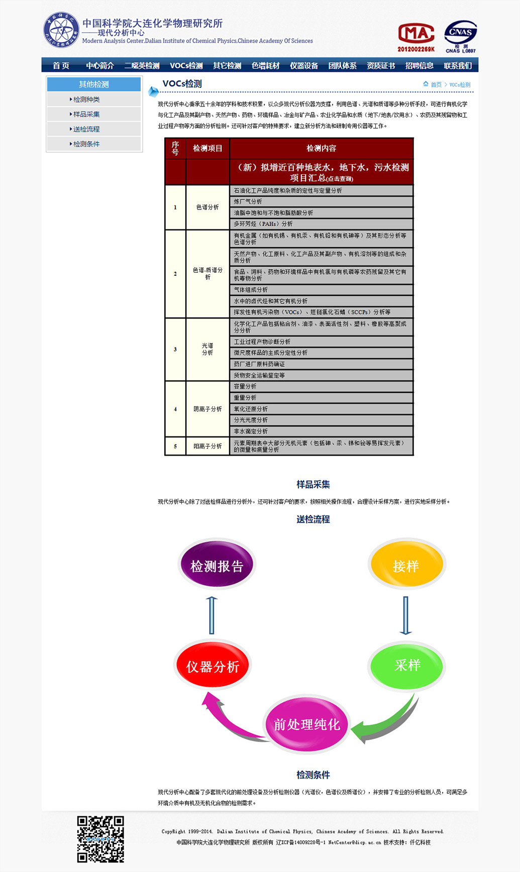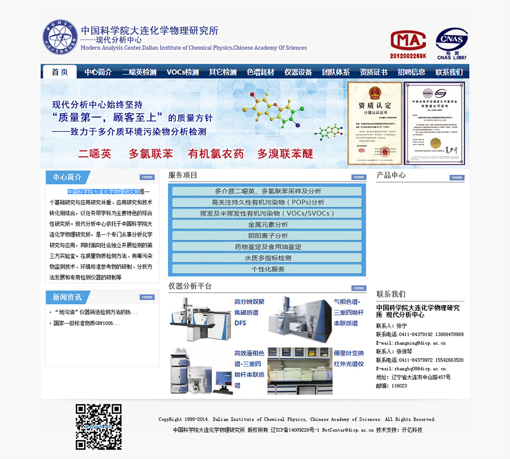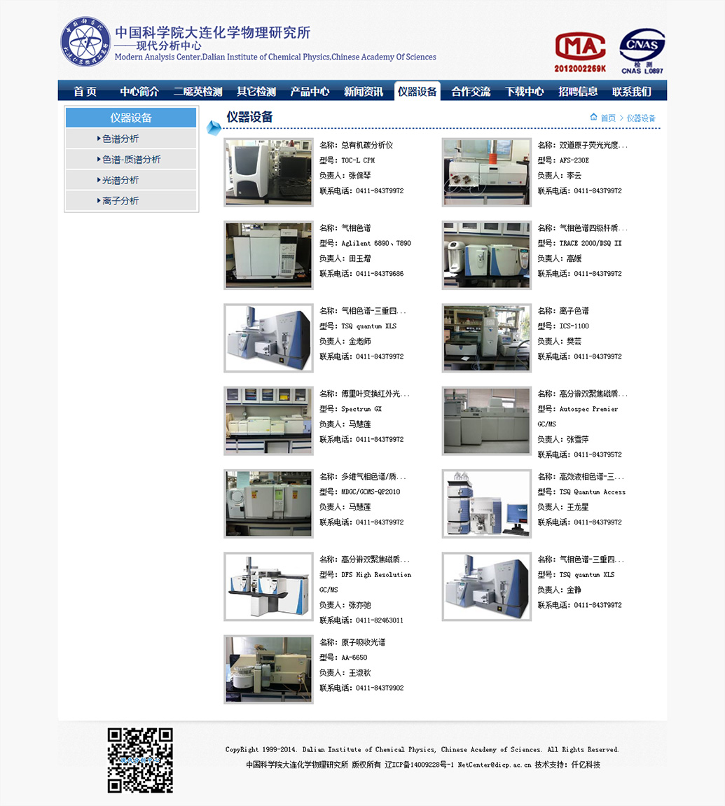 中国科学院大连化学物理研究所环境评价与分析研究组(103组)是一个集基础研究、仪器研发及对外服务于一体的综合科研平台,位于大连化学物理研究所生物技术楼(26#楼),现有研究员3人,副研究员11人,助理研究员3人,其它工作人员10余人,在读研究生20人,已经形成一支包括多层次研究的科研队伍和检测服务团队...