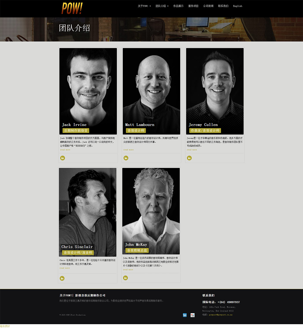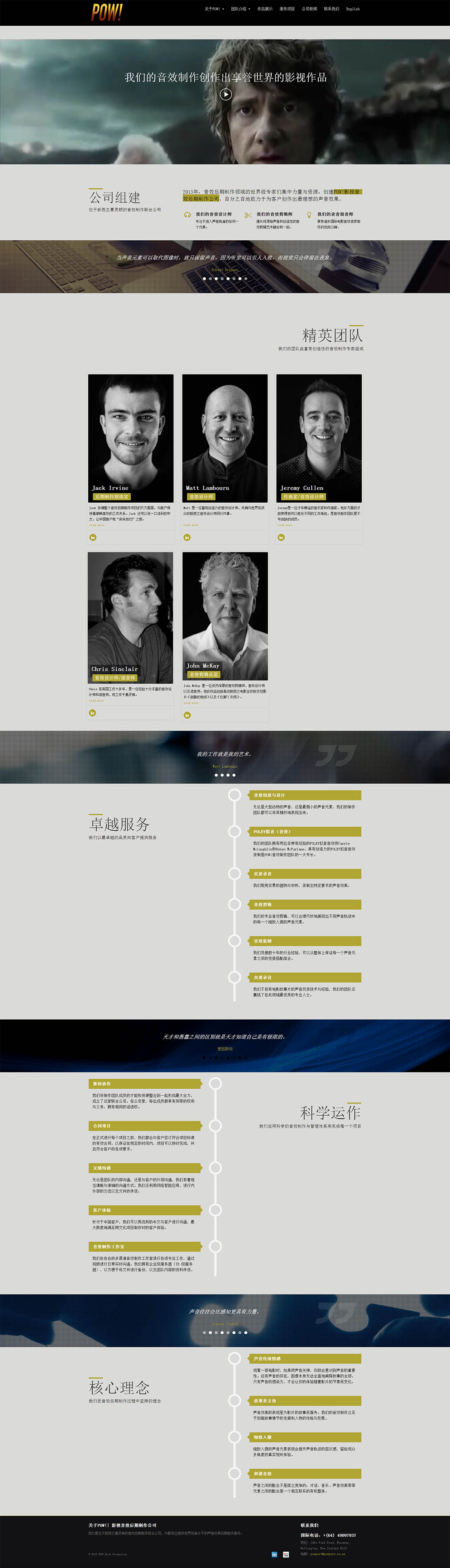 2015年,音效后期制作领域的世界级专家们集中力量与资源,创建POW!影视音效后期制作公司,百分之百地致力于为客户创作出最理想的声音效果。我们将制作团队成员的才能和资源整合到一起形成最大合力,成立了这家联合公司...