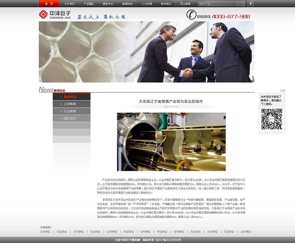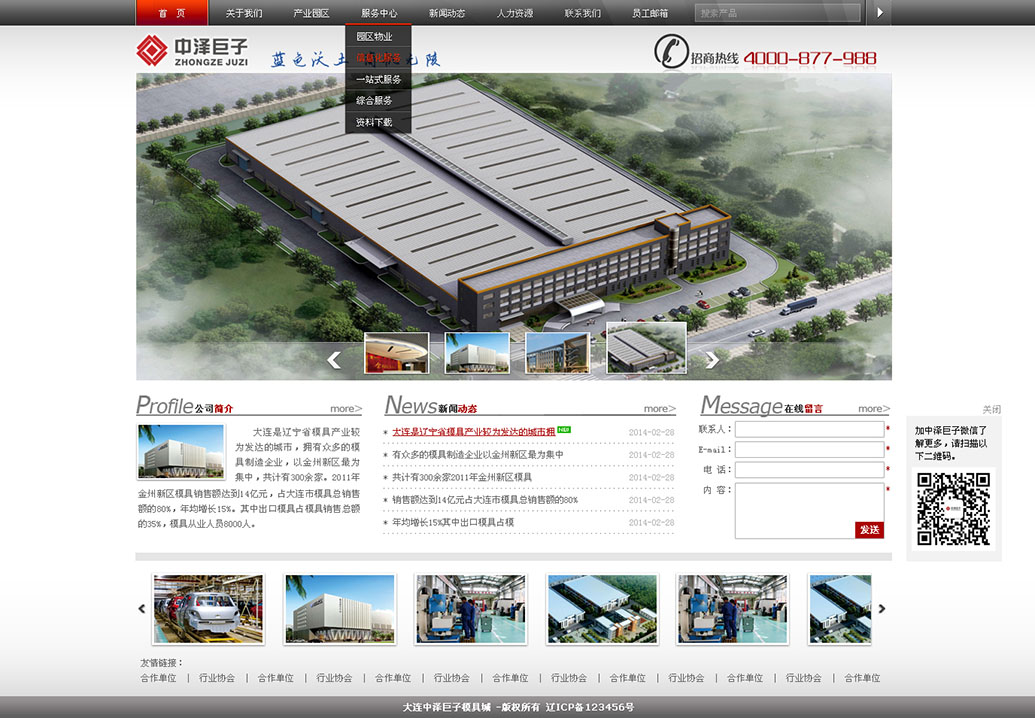 大连中泽巨子产业发展有限公司位于大连市双D港,项目投资总额20亿元,项目规划将建设“大连中泽产业园”。项目主要包含模具产业区、智能装备产业区、汽车零部件产业区和公共服务中心四个组成部分,总占地面积40余万平方米,一期用地面积约11万平方米,投产后预计年产值可达25亿元,年利税约4.5亿元。