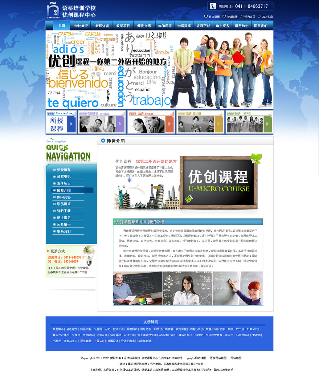 优创多国语教学研究中心是大连外国语大学国际化人才培训基地与西班牙康普顿斯大学和法国巴黎第十三大学的合作办学项目。本中心自建立伊始就确立了“以特色求生存、以精品求发展”的办学方针。在双方大学的有力支持下,本中心已经逐步建设成为一个以海归精英和大连外国语大学师资为依托、集外语教学研究功能于一体......